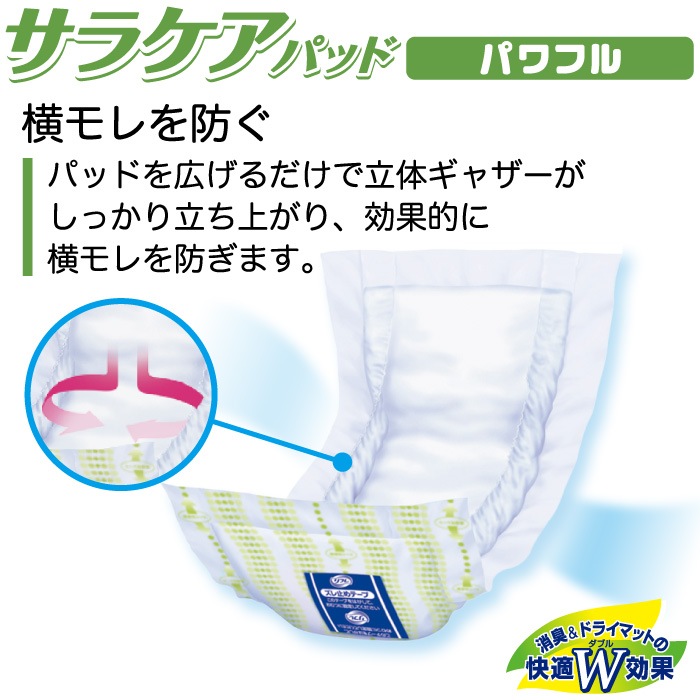 大人用紙おむつ「リフレ サラケアパッド パワフル」は、透湿性シートを採用した、ムレにくくお肌にやさしい尿とりパッドです。